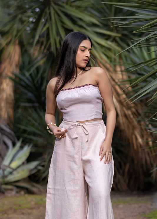 Made from sustainable hemp fabrics and botanical dyes, which require less water, pesticides, and fertilizers to grow compared to traditional cotton.